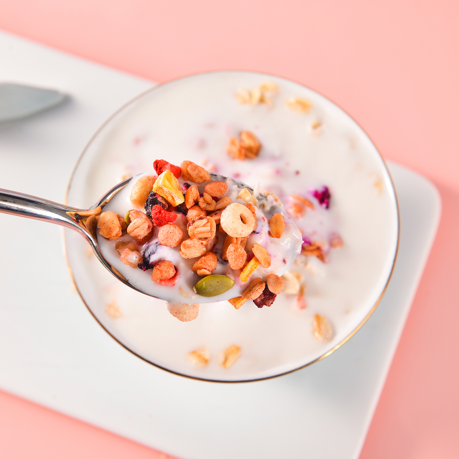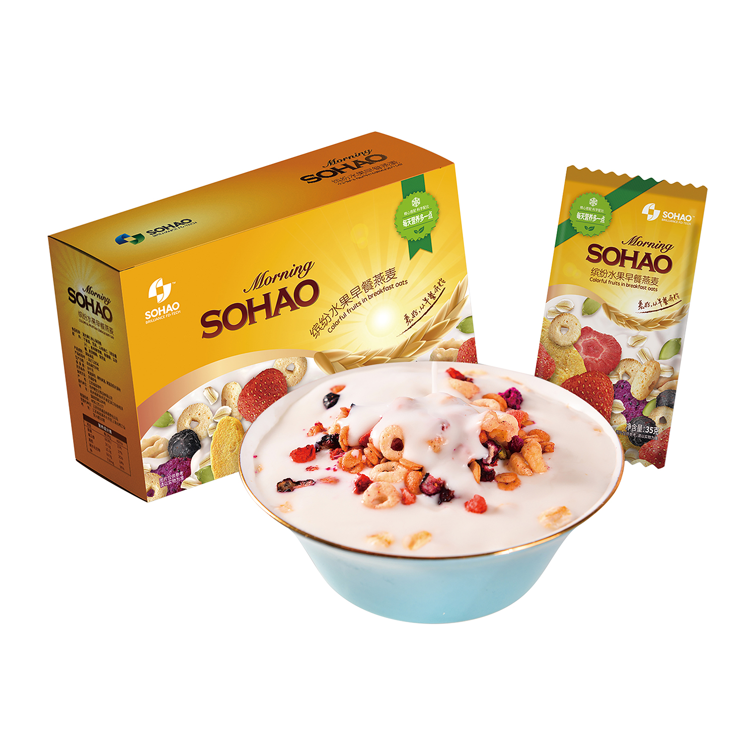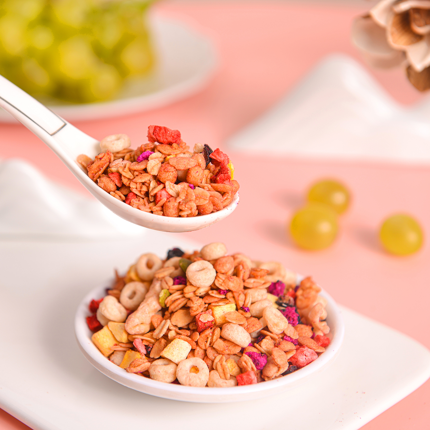 A delightful harmony of nutritious whole grain oats and various dried fruits that are expertly blended to create the ultimate breakfast experience. Each mouthwatering bite delivers a wholesome, energizing meal packed with essential nutrients. Savor the enticing dance of flavors and textures, while enjoying the perfect balance of health and taste. Pick the delicious product and star every morning with a nutritious meal.