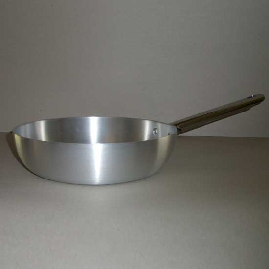 Featured here is a fry pan with aluminum construction. The fry pan comes with a handle well-made in stainless steel for enhanced sturdiness. The aluminum construction ensures even heat distribution besides guaranteed durability.