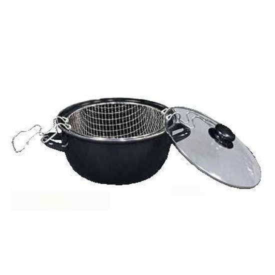 The fryer pot is made of aluminum housing in high durability. The fryer pot features a glass lid and a perforated basket. The heavy-duty handles allow for easy and safe carrying.