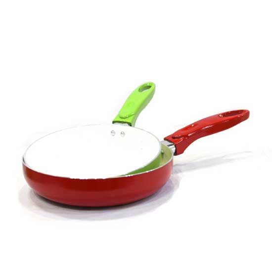 This heavy-duty frying pan set is constructed from aluminum for long time service. The brilliant exterior brightens up your kitchen instantly. There are two sizes available to meet your needs.