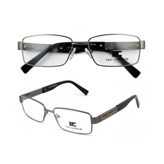 These full frame spectacles features a matte metallic finish in gray. The simplistic, rectangular lenses produce a professional and confident image for wearers. The subtle wood-pattern and screw embellishment on the temple arm delights many consumers.