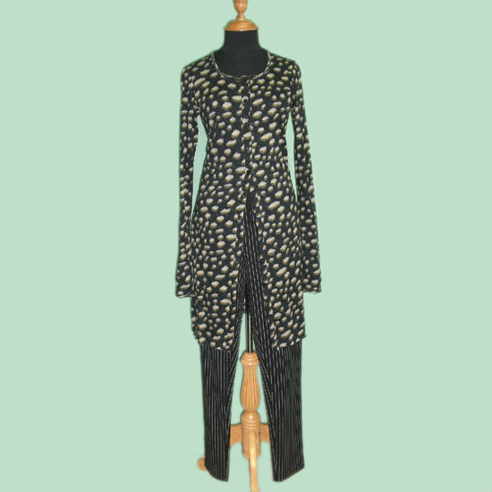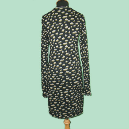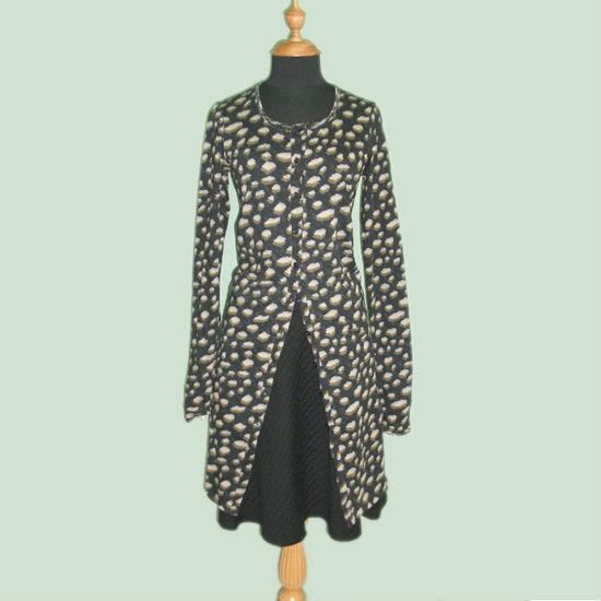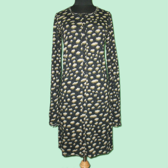 Printed wool cotton jersey dress, fully placket open fornt, long sleeves