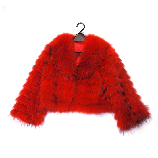 This cropped ladies' jacket is covered with dense and fluffy red fur. The luxurious fur jacket is a symbol of elegance and wealth. Show the world your fabulous sense of style with this fur jacket.