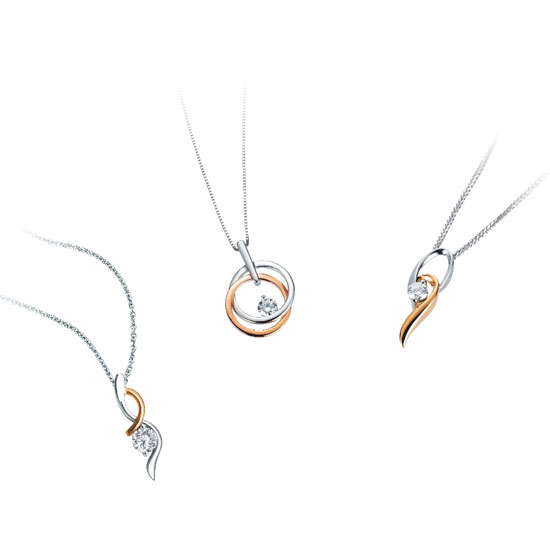 The fusion pendant features a dazzling fusion of pink and white gold with round diamond. The pendant creates a sparkly and luxuriant effect. It is surely a great choice for your jewellery collection.