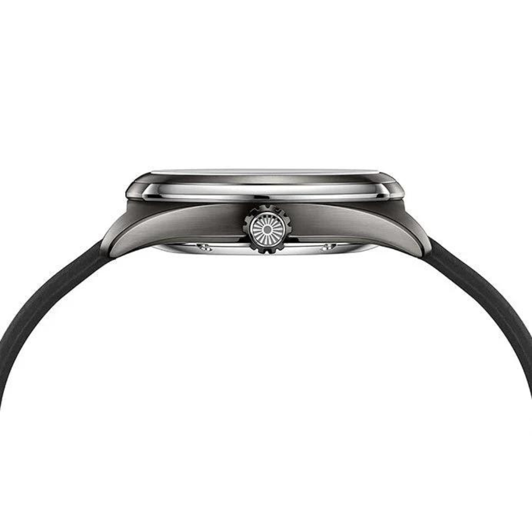Dial: Black. Matte fumé finish. Applied hour markers