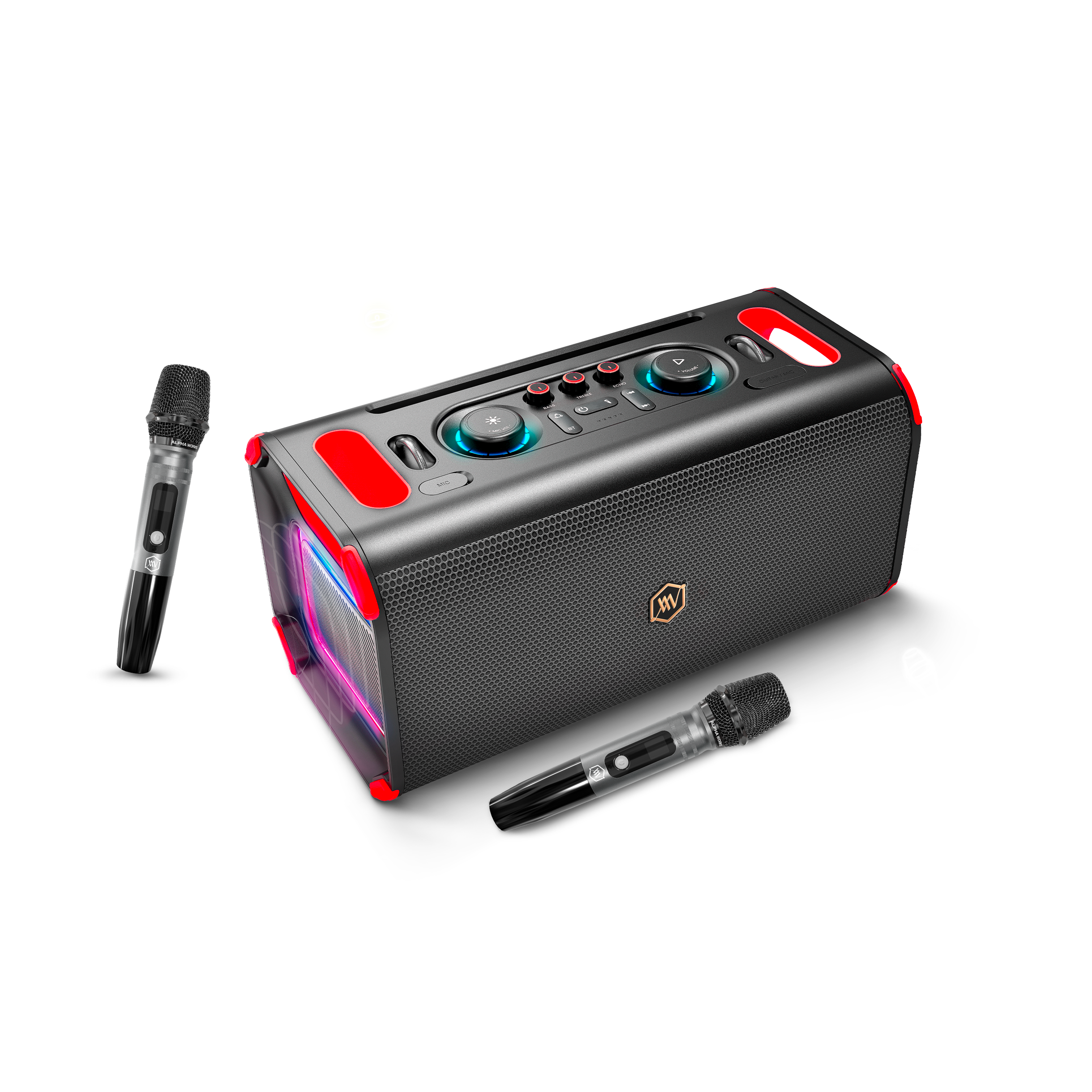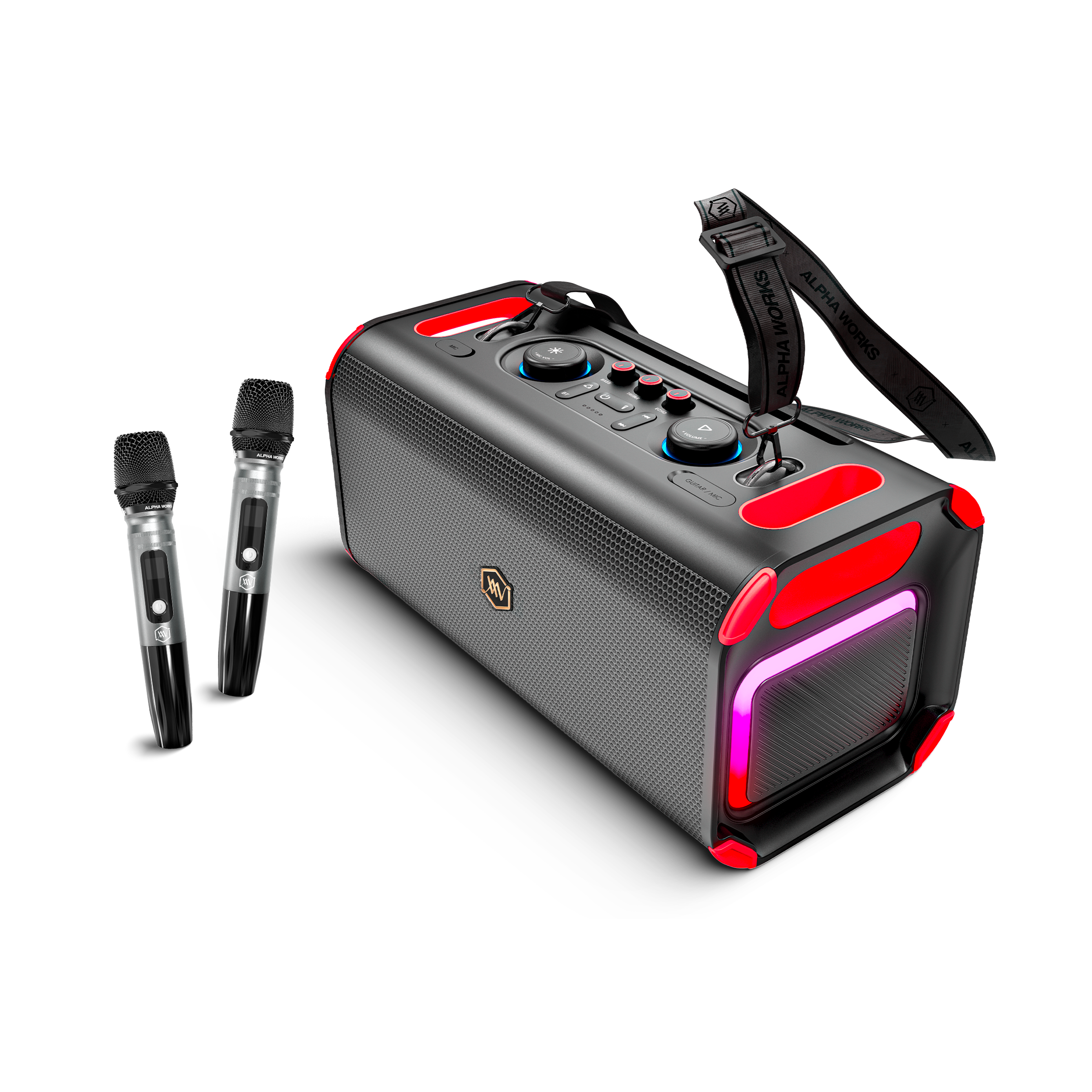Feature: Bluetooth 5.4 Auracast, TWS, RGB Lighting, USB Playback, Built-in Dual Karaoke Microphones