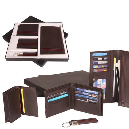 SET OF LONG WALLET, BUSINESS CARD HOLDER, MENS WALLET AND KEY FOB MADE FROM REAL LEATHER