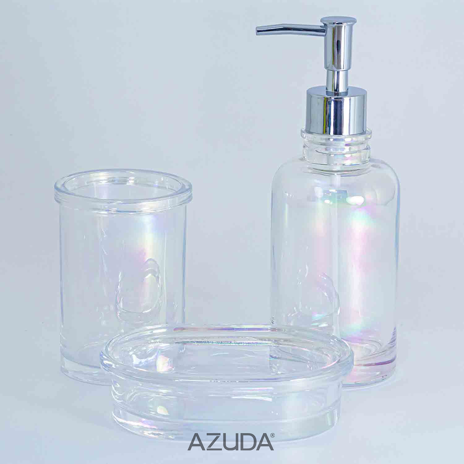 GLASS BATHROOM SET IRIDESCENT EFFECT