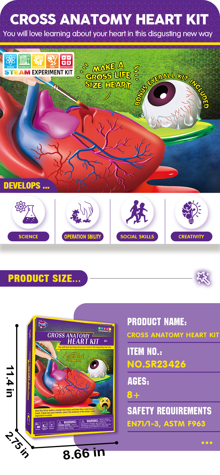 Ideal Gift for Curious Kids: Gross Anatomy Heart STEM kit is designed for kids 8+. The disgusting science kit is the perfect gift for special days like Christmas, birthdays, holidays and more. This specially designed disgusting science experiment kit helps inspire a lifelong love of science and provides unforgettable gross science moments for parents and kids alike!