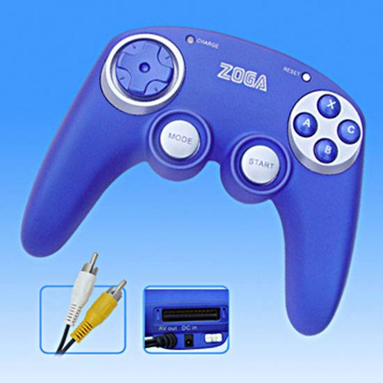 The featured game console is for 16-bit portable video game machines. It has both console and joypad functions. Operated on built-in rechargeable lithium batteries, the console is compatible with Mega Drive II system.