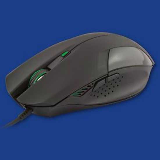 This dark gray gaming mouse is equipped with a green sensor that delivers excellent performance. It is designed with a scroll for easy navigation. The ergonomic contours allow a comfortable and firm grip.