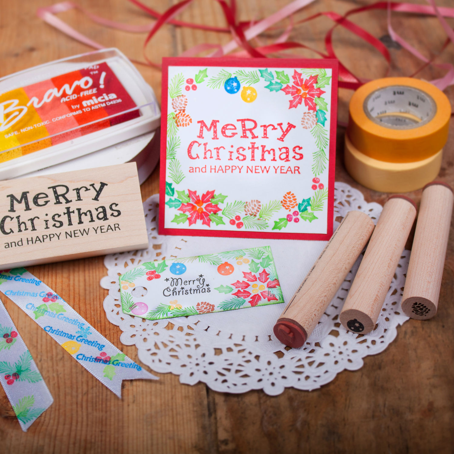 High-quality maplep-wood stamp, containing five cylindrical stamps and one or two rectangular stamp.