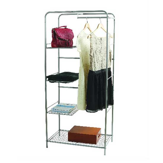This garment rack features a 4-tiered design with a durable structure. You can hang your clothes neatly and put your garment accessories such as shoes and bags on it. This storage system is ideal for household use.