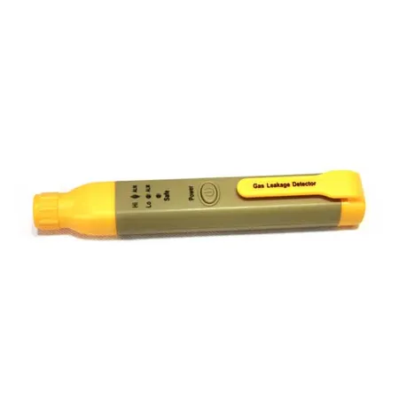 This yellow and brown toned gas leakage detector features a pen shape for portability. It is capable of detecting potential harmful gas leakage and allows you to take measures beforehand. The indicator lights show the working status clearly.