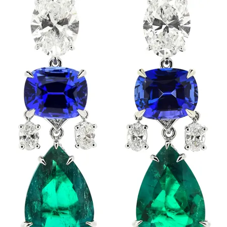 Gems Pavilion Masterpiece Blue Sapphire and Emerald Earring
