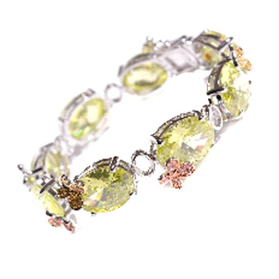 This bracelet features eight oval-shaped gemstones in light green. Each of them is decorated with butterfly patterns as well. They are held together tightly with oval-shaped clasps.