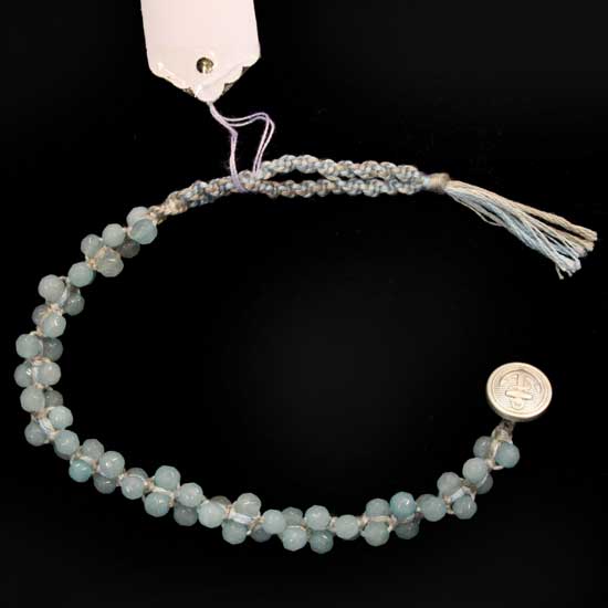 This elegant bracelet is accented with a cluster of small blue gemstone beads. It features a round embossed metal plate on the one end and tassel details on the other. The pretty bracelet makes a great addition to any lady's wardrobe.