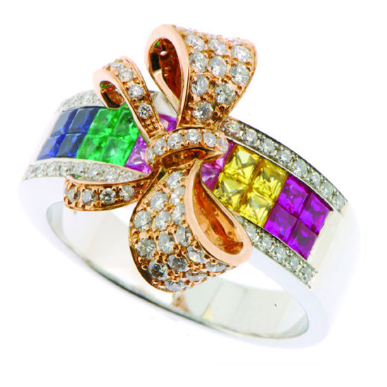 • Combo of blue/pink/yellow sapphire, emerald and ruby.