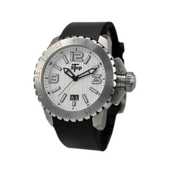 This gents’ quartz analog watch features a clean white dial with Arabic numeral hour markers at 3, 9 and 12 o’clock and stick indices for the rest. The black cut-out hands make a stark contrast with the white dial for easy reading. The stylish timepiece is finished with a black rubber band that promises utmost wearing comfort.
