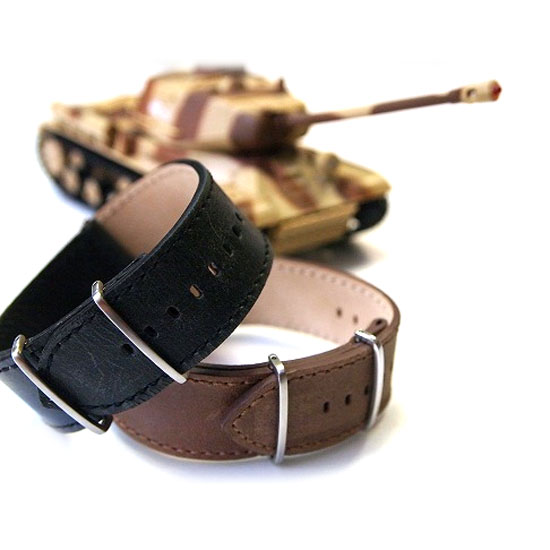 Displayed is a genuine calf leather strap in the NATO style. Its broad strap is accented with delicate topstitching. This piece is also available in different stylish colors for your option.