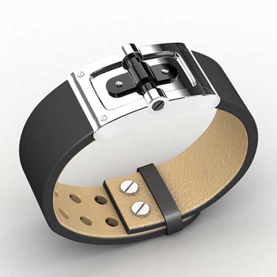 Displayed is a genuine leather bracelet with stylish IP plating to offer exceptional attractiveness. The genuine leather strap matches the metal part flawlessly. This fashionable bracelet is a classy accessory to enhance casual outfits.