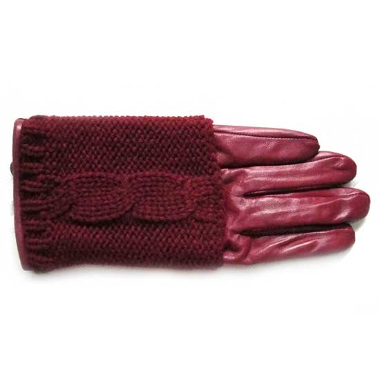 The genuine leather gloves take on a grand style with their burgundy red layout. They are wrapped with pieces of knitted fabric for enhanced warmth. This pair makes a flattering complement to any grand-style outfits.