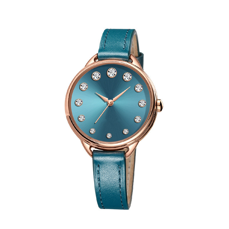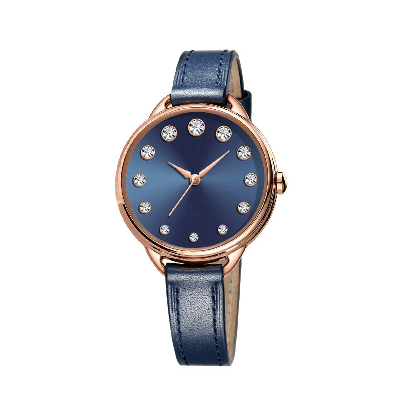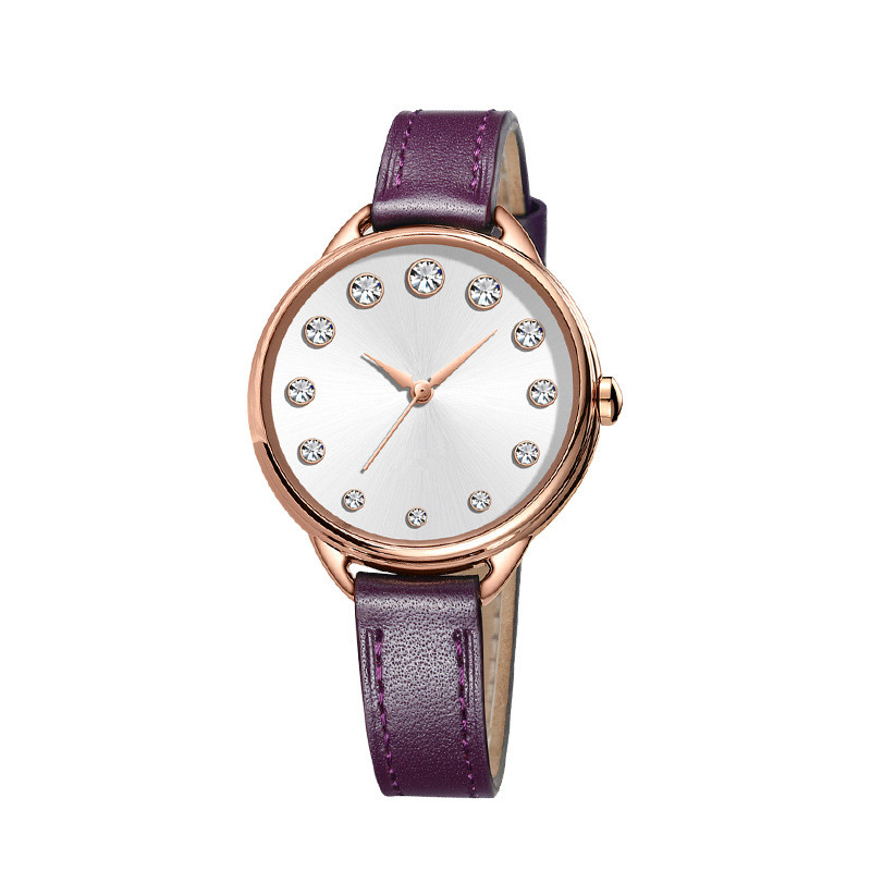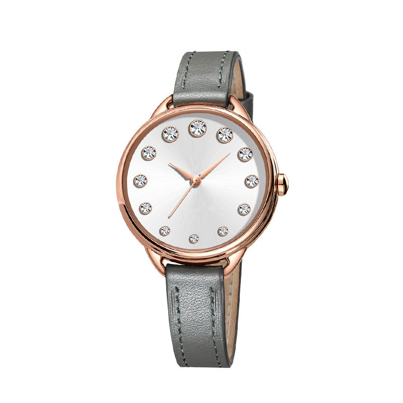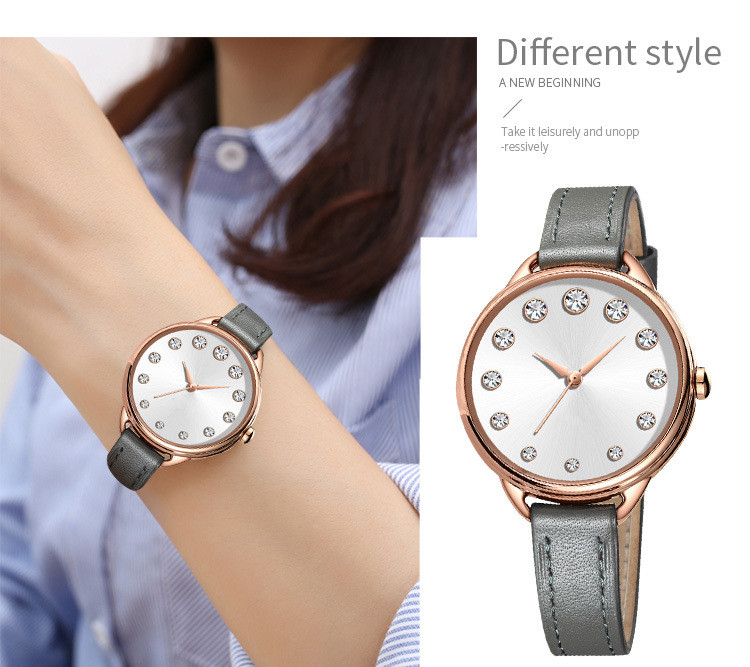 Genuine Leather Simple Diamond Women Lady Quartz Watch