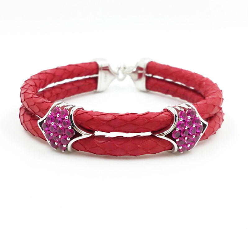 Luxury genuine python skin bracelet with real swarovski zirconia by wax setting
