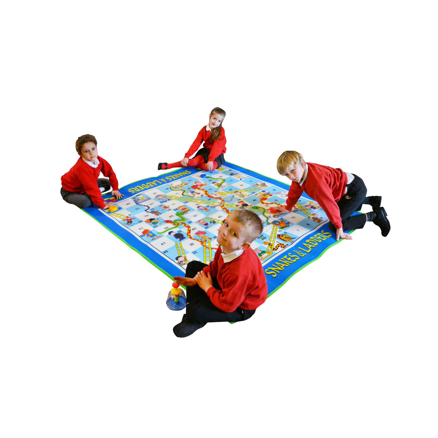 The Giant Snakes and Ladders Game with Dice Dome Game provides hours of fun for both children and adults. The aim of the game is to be the first player to reach the end by across the board from square 1 to square 100. Travel the board from base to top moving either up the ladders or down the snakes. Set contains four large coloured counters and large dice dome - never lose a dice again! This fantastic game is UV resistant, water resistant and suitable for both indoor and outdoor use. For 2-4 players. 180 x 160 cm. Age 3+