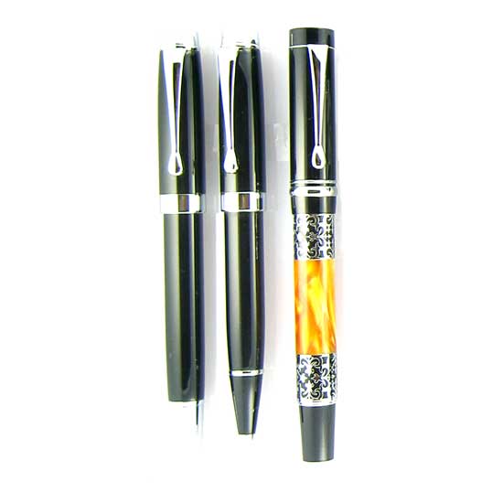 The ballpoint pen showcases a slightly thick barrel exquisitely printed in black, bringing out a touch of class and style. The metal clip on the side helps you attach the pen effortlessly to books or chest pockets. This sophisticated ballpoint pen is an exceptional piece of stationery both for personal use and gift giving.