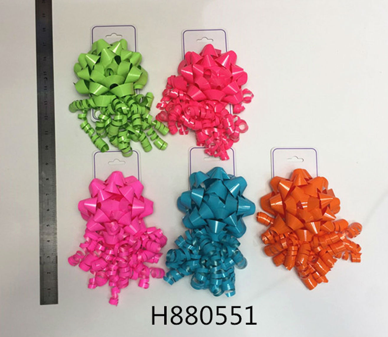 Bow: 5"X27 loops, ribbon width 18mm; Curly:6mmx12 Strands