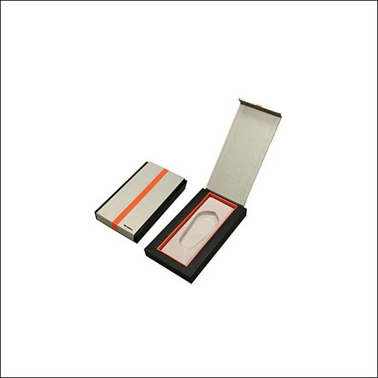 Package your products in a classy way with this rectangular shaped gift box. It has a lid for covering and has a molded tray for holding products in place. This gift box can protect the stored items well and can be printed with brand name for promotional use.