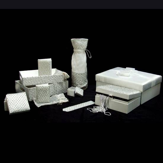 As shown are gift boxes and bags for gifts of different sizes. Made of fine material, these gift boxes and bags are durable and of high quality. They can be reused for the sake of environmental friendliness.