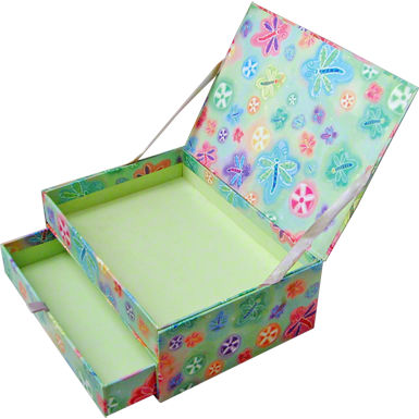 Decently display your gifts with this layered gift box. Exquisitely constructed with two layers with a drawer at the bottom, the box neatly holds your treats in an organized manner. The wonderful patterns peppered all over the piece further elevate your pieces with a magical, fascinating feel.