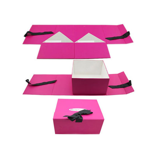 This is a charming gift box with a foldable design. It is made of quality materials for a long service life. This fashionable gift box is finished with a black ribbon.