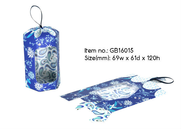 Wrap your party treats with this fancy packaging box. This box features a hexagonal shape, a clear window, and an integrated hanging loop. Both of the interior and exterior are printed with intricate patterns. Designed for convenient applications, it is easy to assemble without any tools needed.