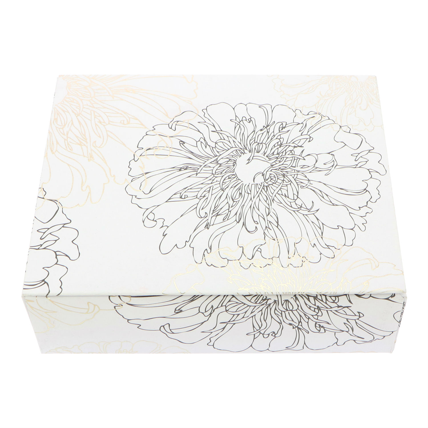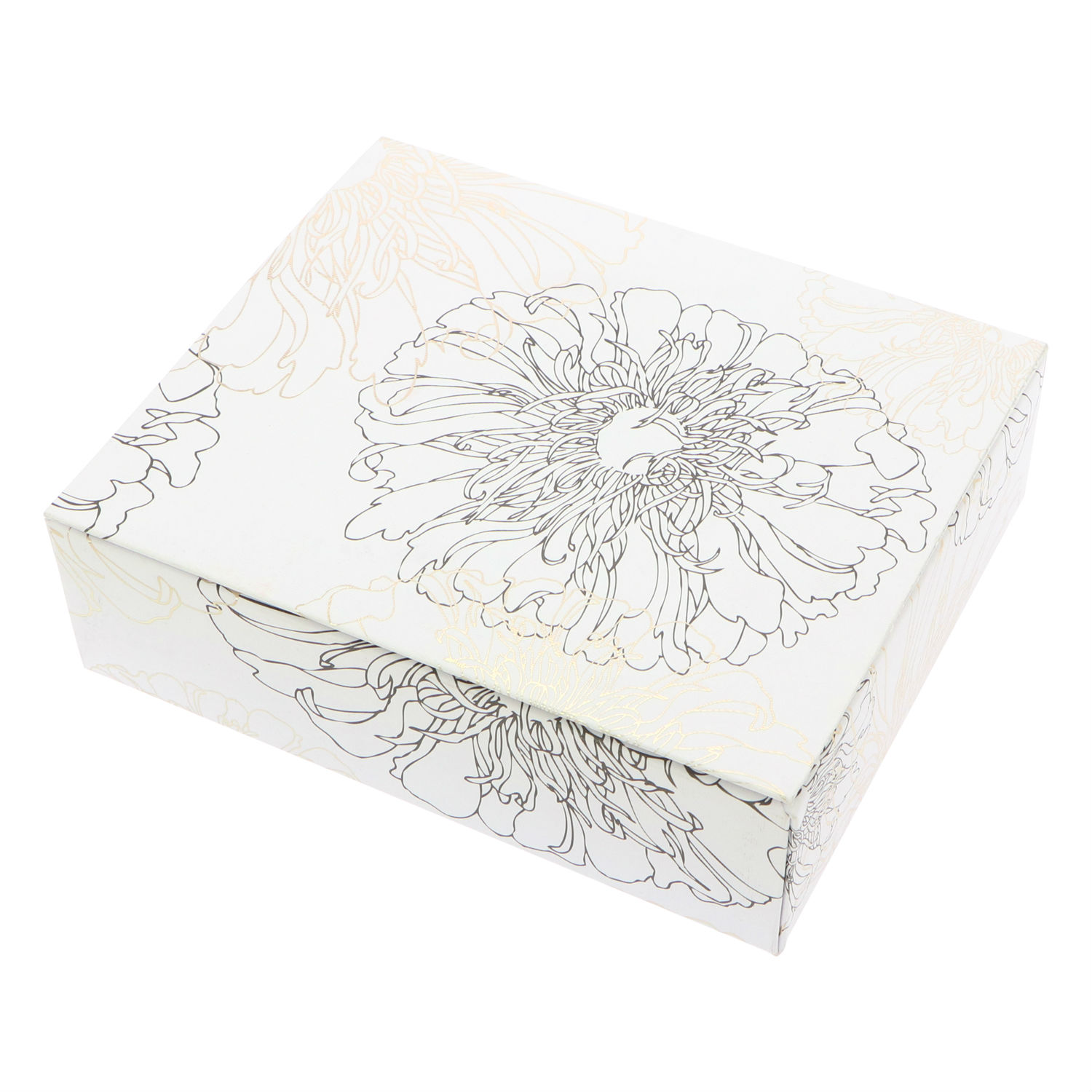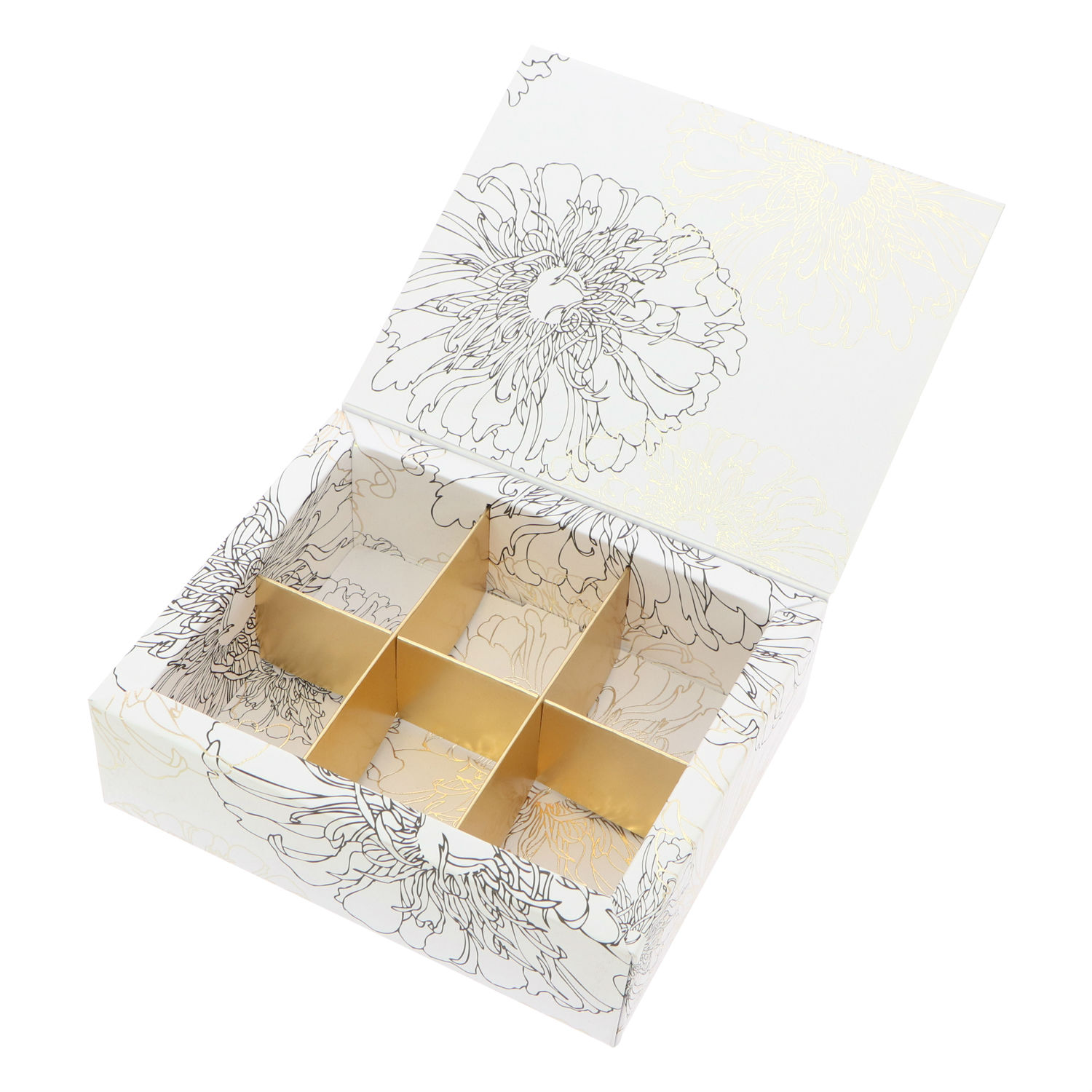 Adorned with elegant floral prints on the exterior, this packaging box offers a classy way to present your gifts. It comes in a rectangular shape and has a flip top lid for covering. Inside the packaging box is a tray divided into six partitions for holding gifts, chocolates, etc.