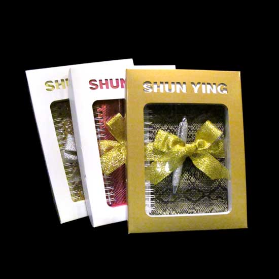 This is a gift box set that includes a spiral notebook and a pen with a ribbon-like bow on the cover. This stationery set is exquisitely packed in a unique gift box. This gift box set is surely a perfect gift ideal for your friends.