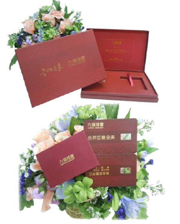 This gift box is in a red color and is very exquisite. It has a well-designed interior, showcasing a sense of elegance and luxury.