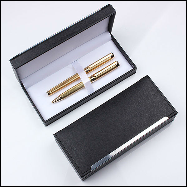 Premium-looking yet affordable, the beautiful pens displayed here in a nice box are a decent gift option. Coming in a golden sheen, they exude great class and appear as luxe stationery, sitting elegantly inside the light-toned interior of the box. The gift box is embellished with a strap of silvery metal along one of its edges, forming a stark contrast against the golden pens and accentuating the classy design.