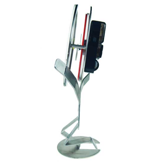 Constructed with stainless steel and acrylic, this creative clock boasts a metallic feel and takes the shape of a little man dancing in joy and spreading his hands. The comical and angular structure appeals to customers instantly, while the dial is enlivened with vivid colors. The metallic base adds stability and a modern, urban touch to this clock.