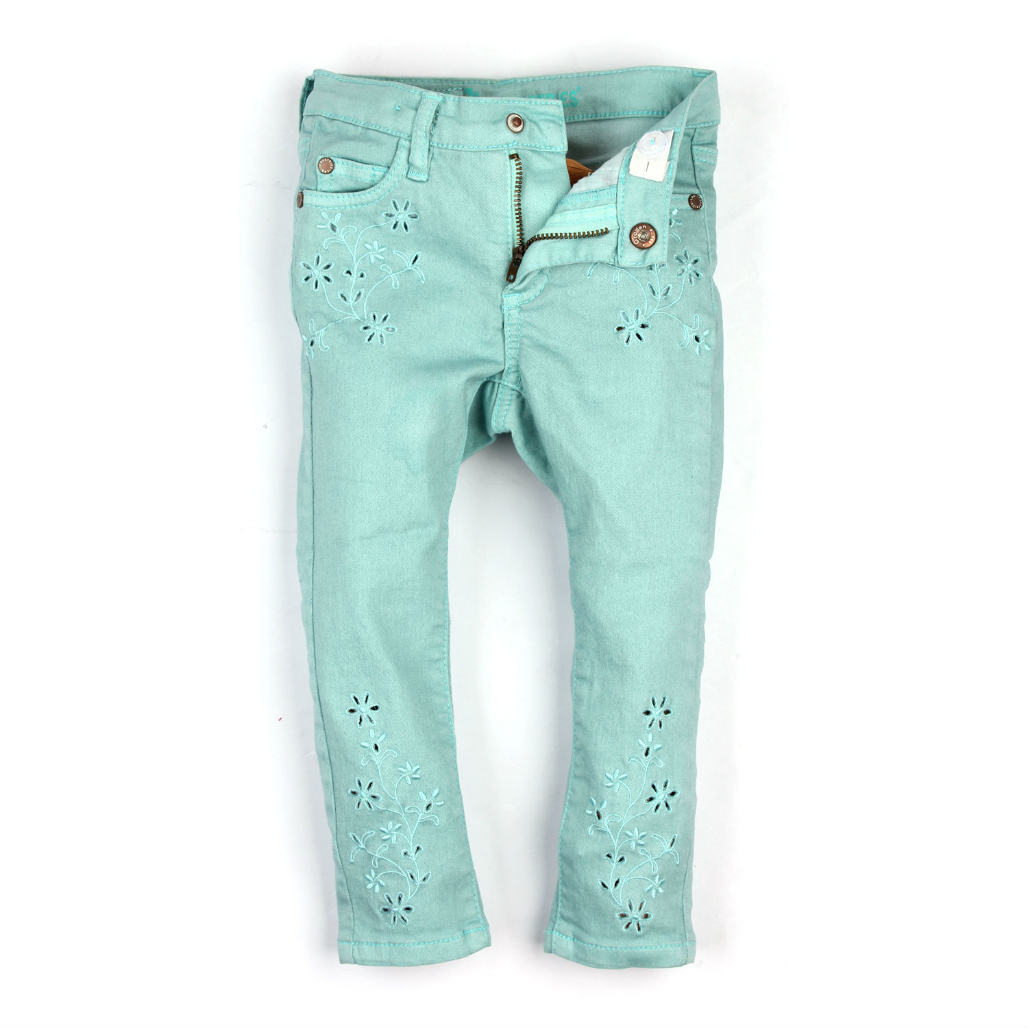 Shown here is a pair of slim-cut jeans which provides a stylish update for versatile straight-leg jeans to round out your toddler girl’s weekend wardrobe. Crafted of comfy denim, this pair flaunts a striking design in light blue and enhances attractiveness with floral embroideries and creases. Let your girl hit the playground with this gorgeous pair.