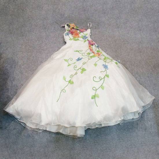 The elegant sleeveless party dress comes with an ankle-length design and a unique one-shoulder neckline. It features a multiple-layer construction with an appealing see-through outer layer. The colorful floral embroidery on the front panel allows for a more attractive look. The sleek finishing accentuates your look for any special occasion.