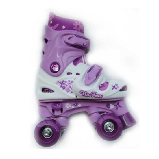 This lovely girls' skate features a comfortable three-quarter athletic boot with padded ankle collar for extra support. The wide, smooth rolling wheels offer extra stability that young skaters need. Both left and right skates come with a toe-brake for safe, reliable stops.