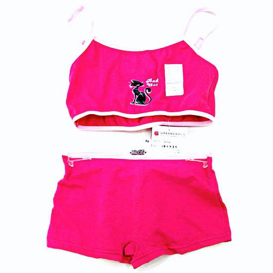 The girls' underwear set includes a cropped top and a pair of boxer shorts. The bright pink color brings out the cheerful personality of your little girl. The elastic material promises a comfortable fit and easy movement. This cotton underwear set makes a must-have for your girl's wardrobe.