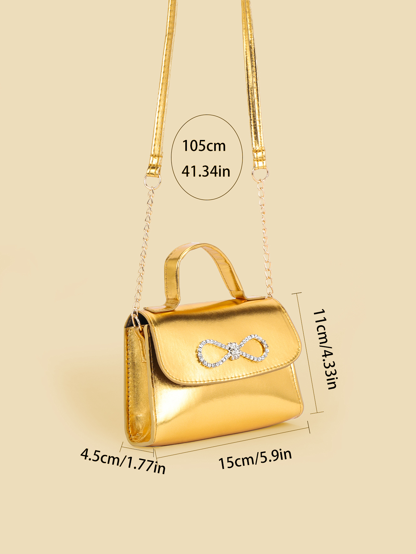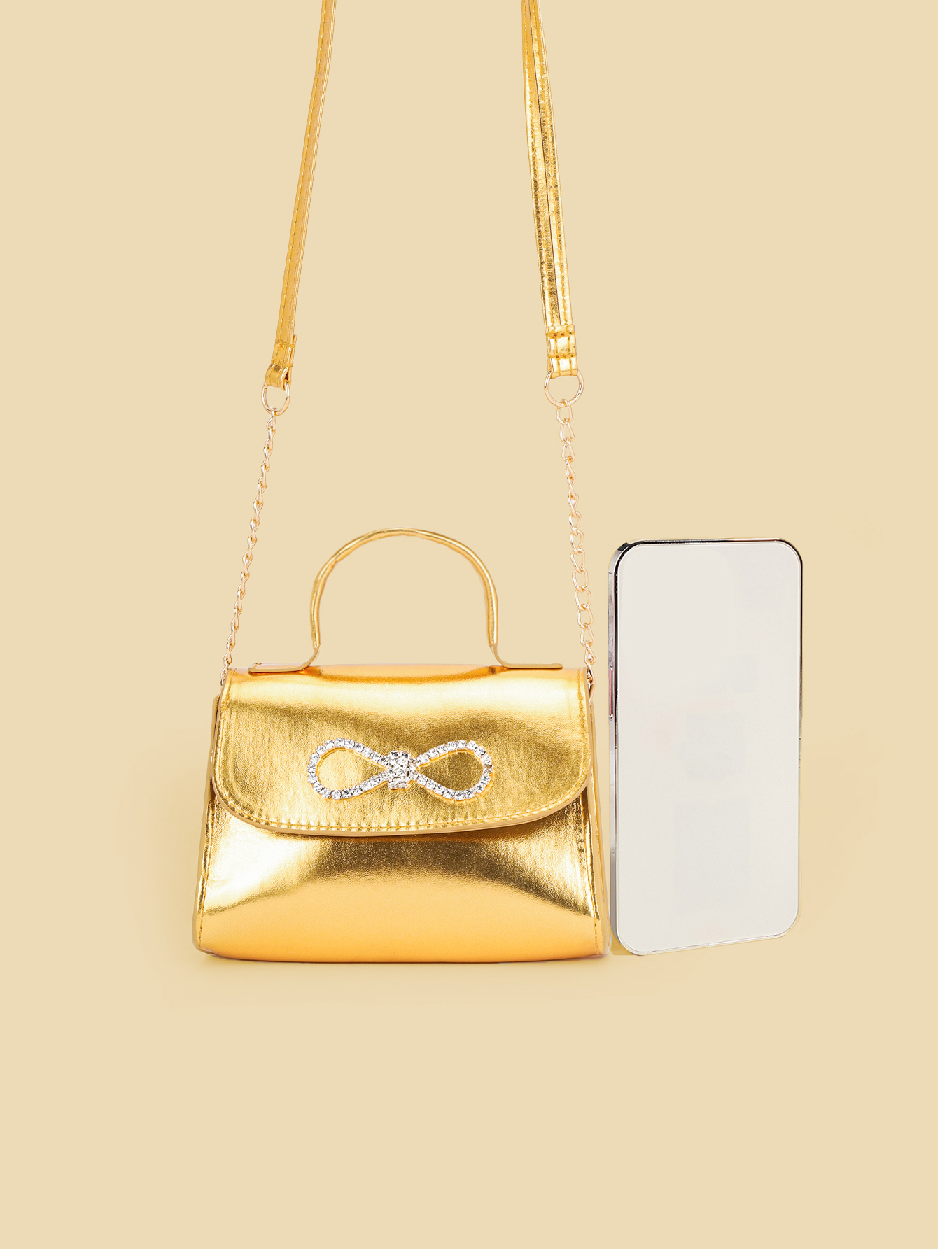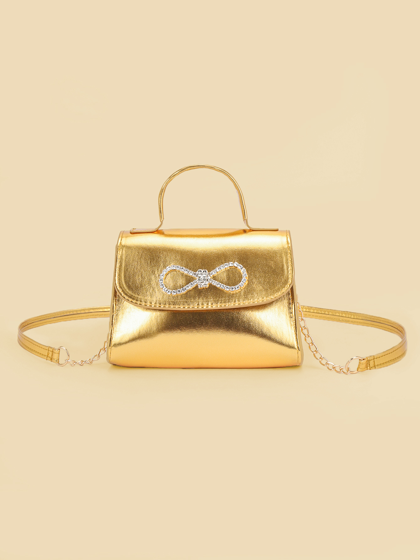 Gold Bow Diamond crossbody bag for girls is a stylish accessory designed for little girls, combining luxury and children's fun elements to add a touch of sparkle for little princesses. This bag uses a dazzling gold tone as the main color, like a glittering treasure in the sun, attracting everyone's attention, both noble and lose the lively atmosphere of childhood.