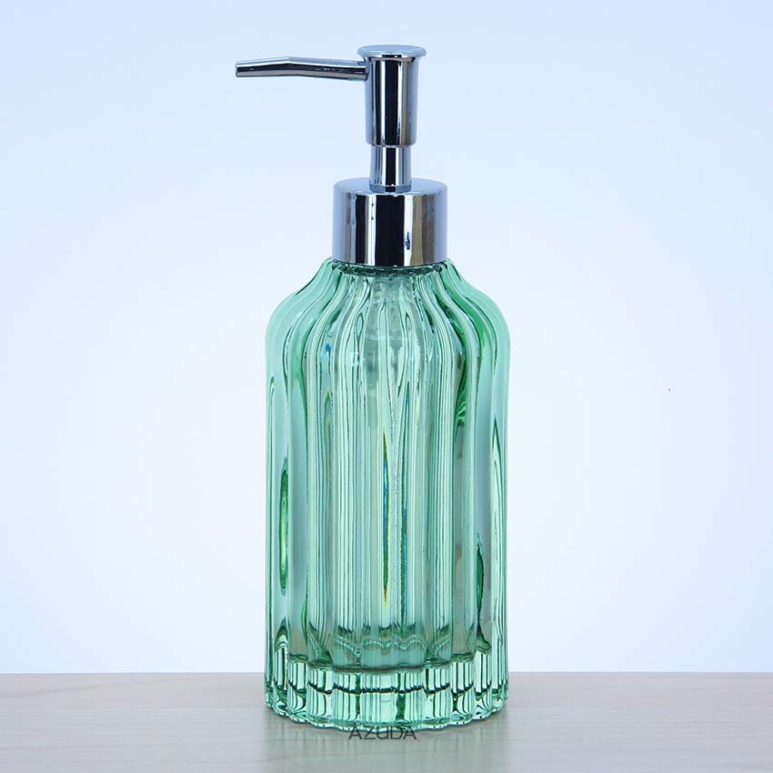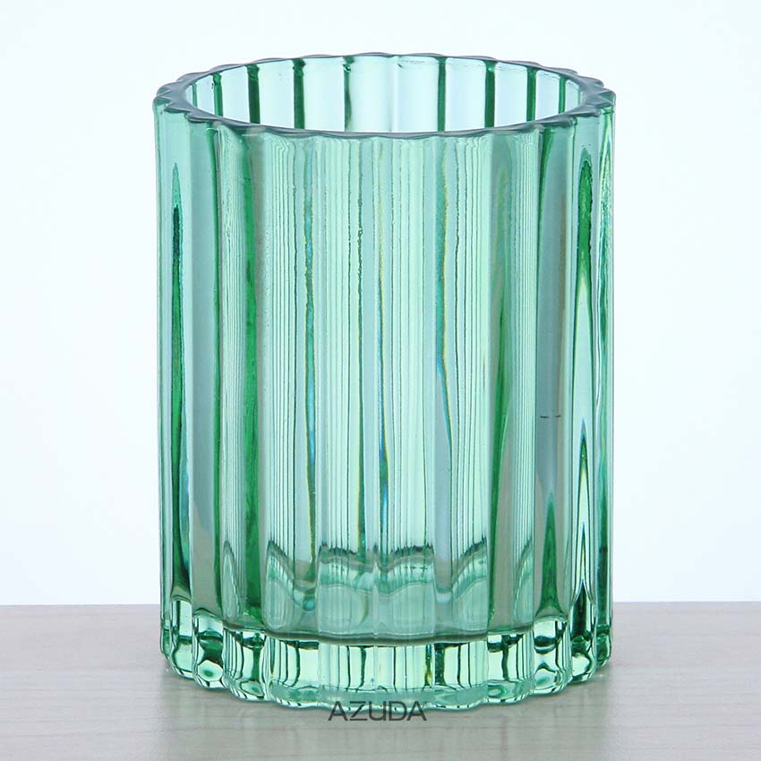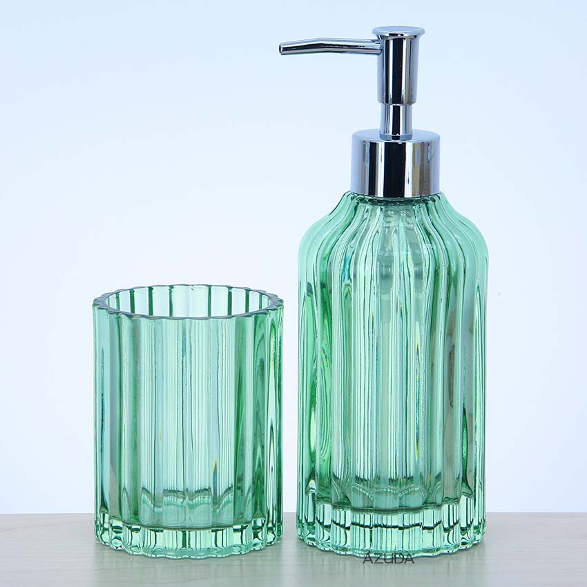 Glass Bathroom Accessories Set Fluted Design In Green