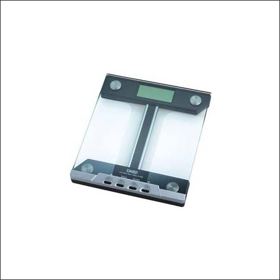 The shape of the body scale is square, with a glass top to stand on.