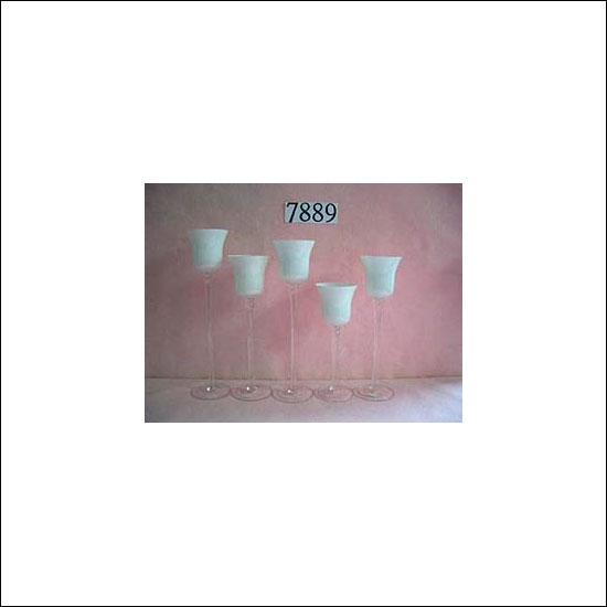 Glass Candle Holder with White Bowl and Clear Stem and Base