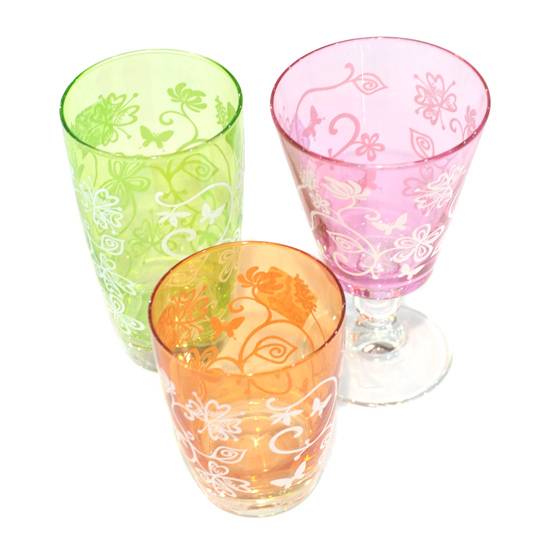 The featuring products are machine-blown glass cup and tumblers which are all made in Italy. They have translucent organic colours in Lilia style and attractive Italian design, in which coloured gemstones can be added to make them perfect for decoration.
